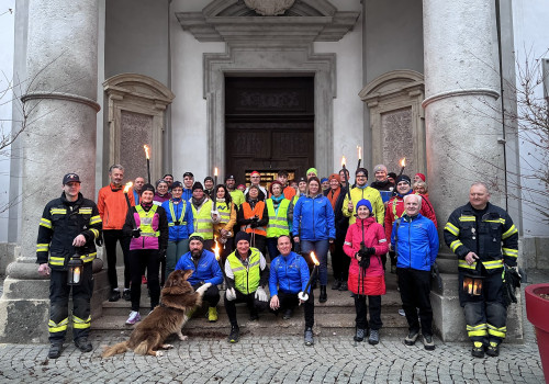 Läufer:innen und Walker:innen treffen sich gegen 17:30 Uhr bei der ehemaligen Kupferstube, um gemeinsam in Formation das Licht zum Pfarrheim zu bringen.